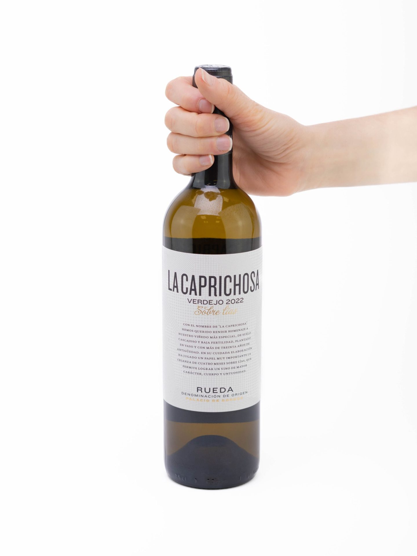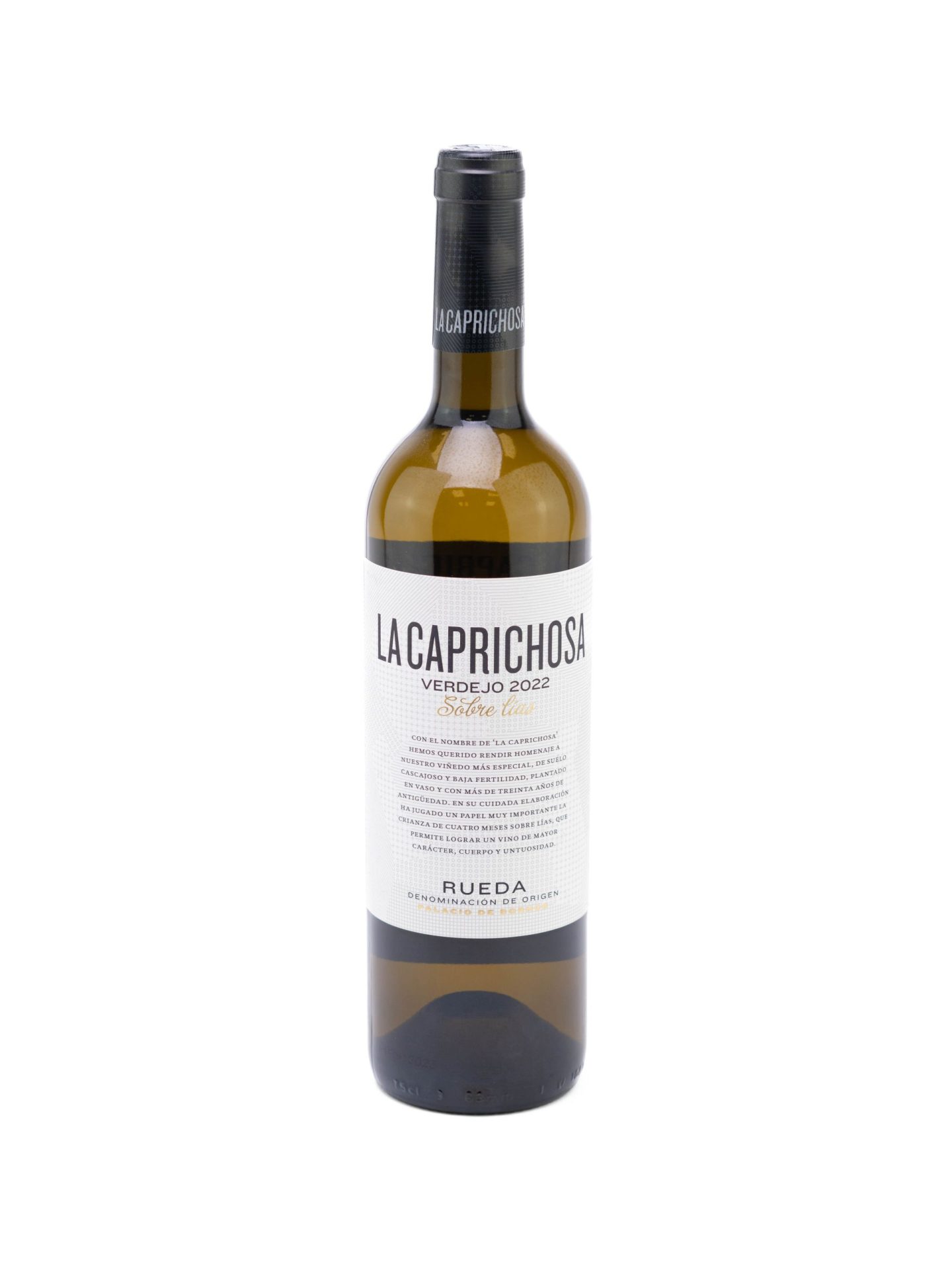 La Caprichosa Verdejo es un vino blanco monovarietal elaborado con uvas Verdejo por la bodega Palacio de Bornos, amparado bajo la D.O. Rueda, en Valladolid, España. Proveniente del viñedo «La Caprichosa», crecido en suelos cascajosos de baja fertilidad a 750 metros de altitud, con viñas de más de treinta años de antigüedad. La vendimia se lleva a cabo manualmente.