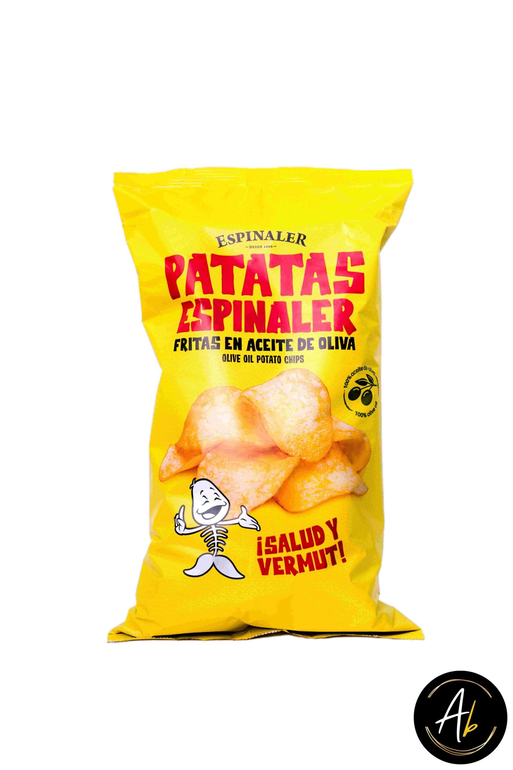 Patatas Espinaler Fritas en Aceite de Oliva son unas crujientes y deliciosas chips, elaboradas con patatas seleccionadas y fritas en 100% aceite de oliva virgen extra. Con un sabor auténtico y una textura perfecta, son el acompañamiento ideal para el aperitivo o como snack en cualquier momento del día.
