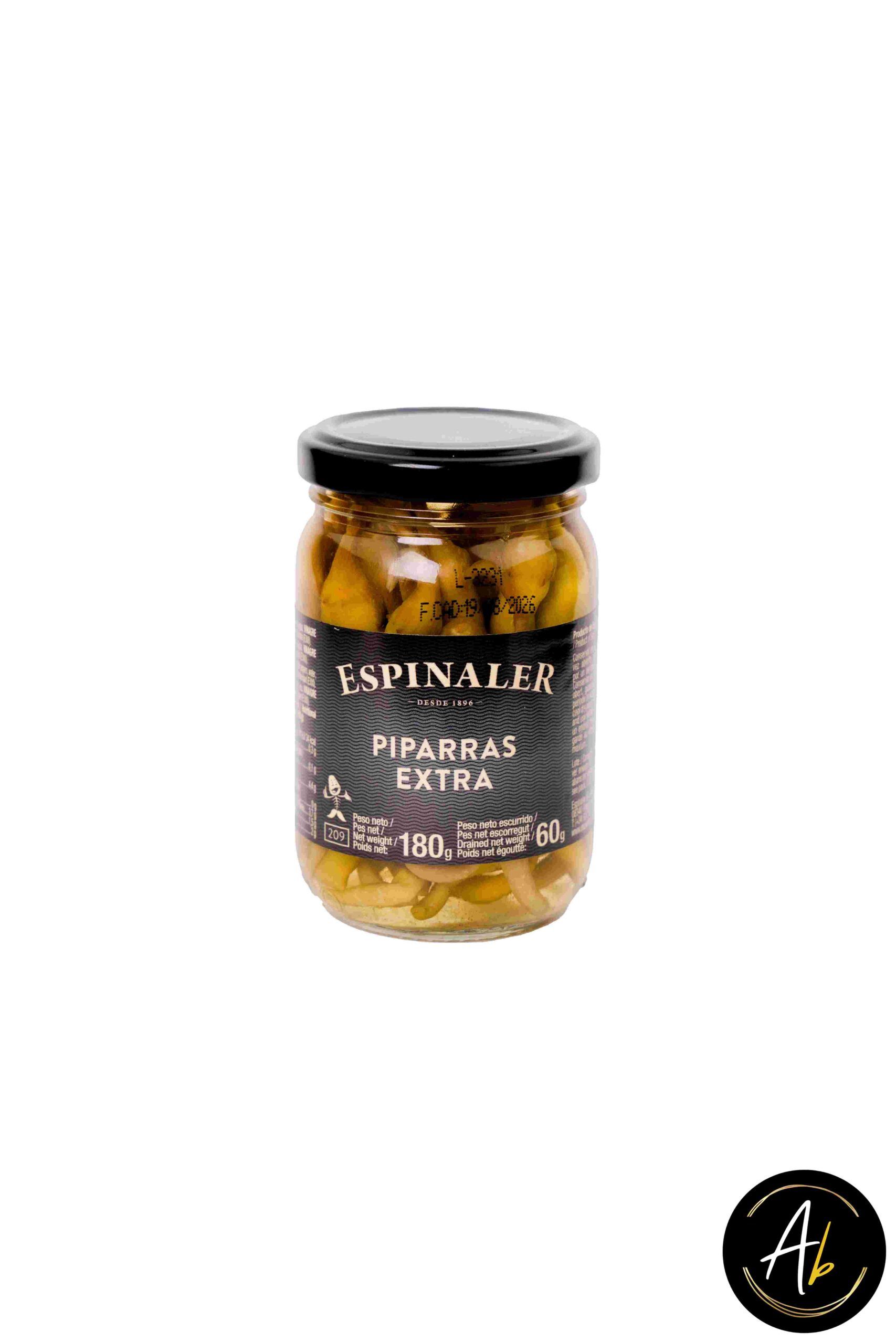 Piparras Extra Espinaler 180gr son un exquisito encurtido elaborado con las mejores piparras seleccionadas. Su textura suave y crujiente, junto con su sabor suave y ligeramente picante, las convierte en el acompañamiento perfecto para cualquier aperitivo o plato. Ideales para combinarlas con tus tapas, ensaladas o simplemente disfrutarlas solas. Un producto de calidad que no puede faltar en tu despensa gourmet.